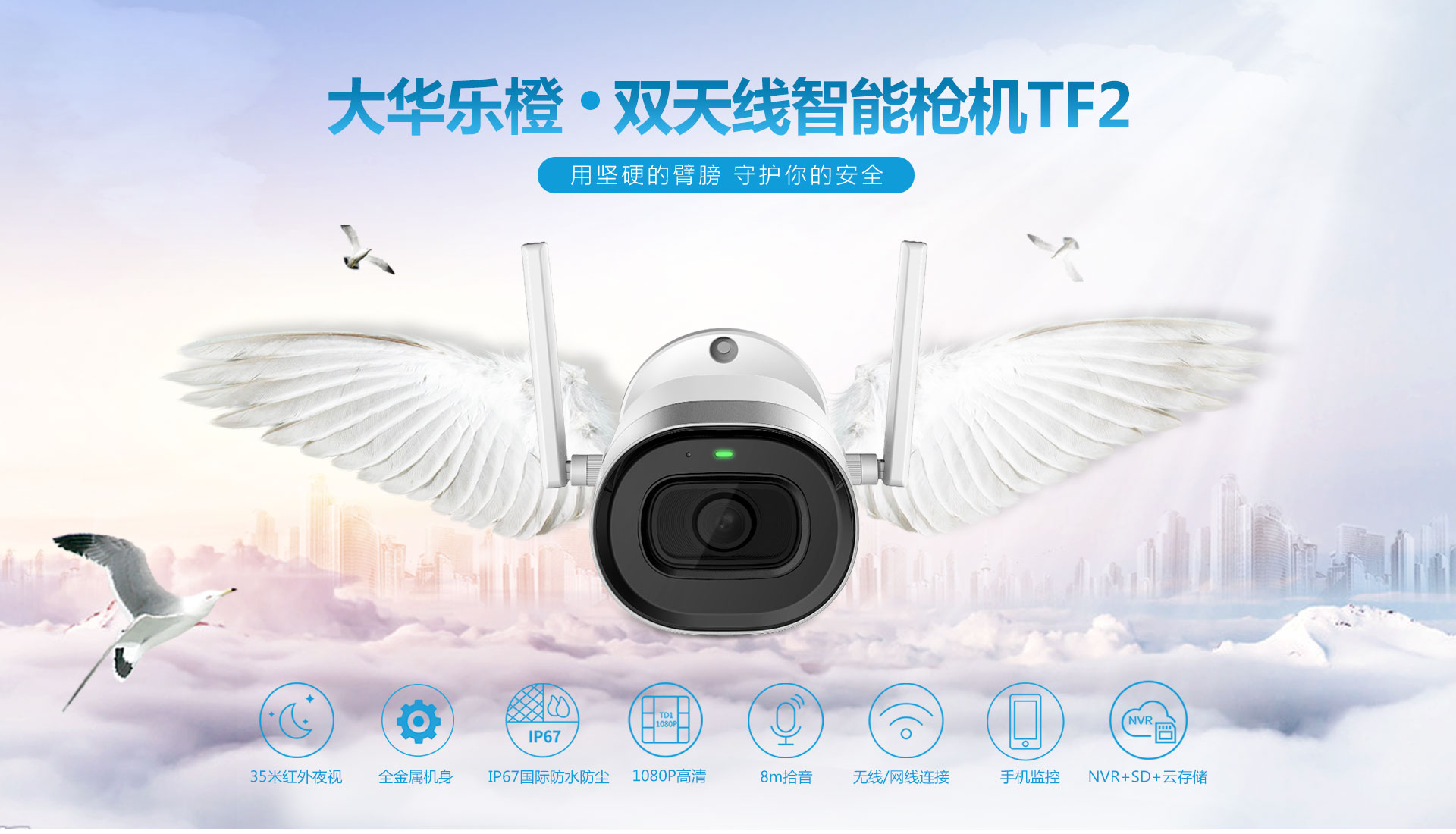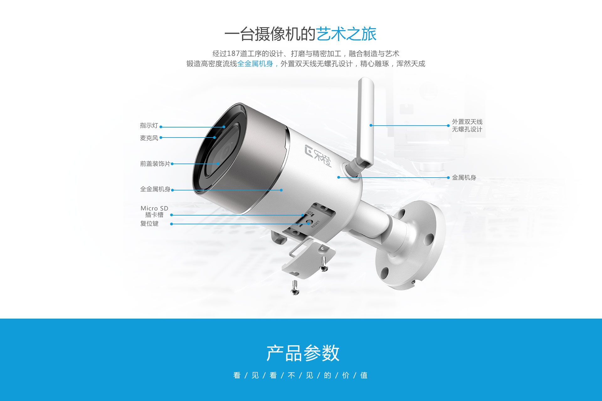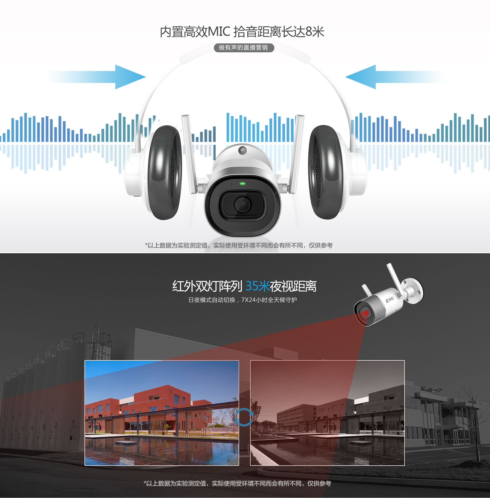功能特性:1080P | 35米紅外夜視 | 全金屬機身 | 防水防塵 | 8M拾音 | H.265編碼 | WIFI/有線連接 | NVR+SD+云存儲