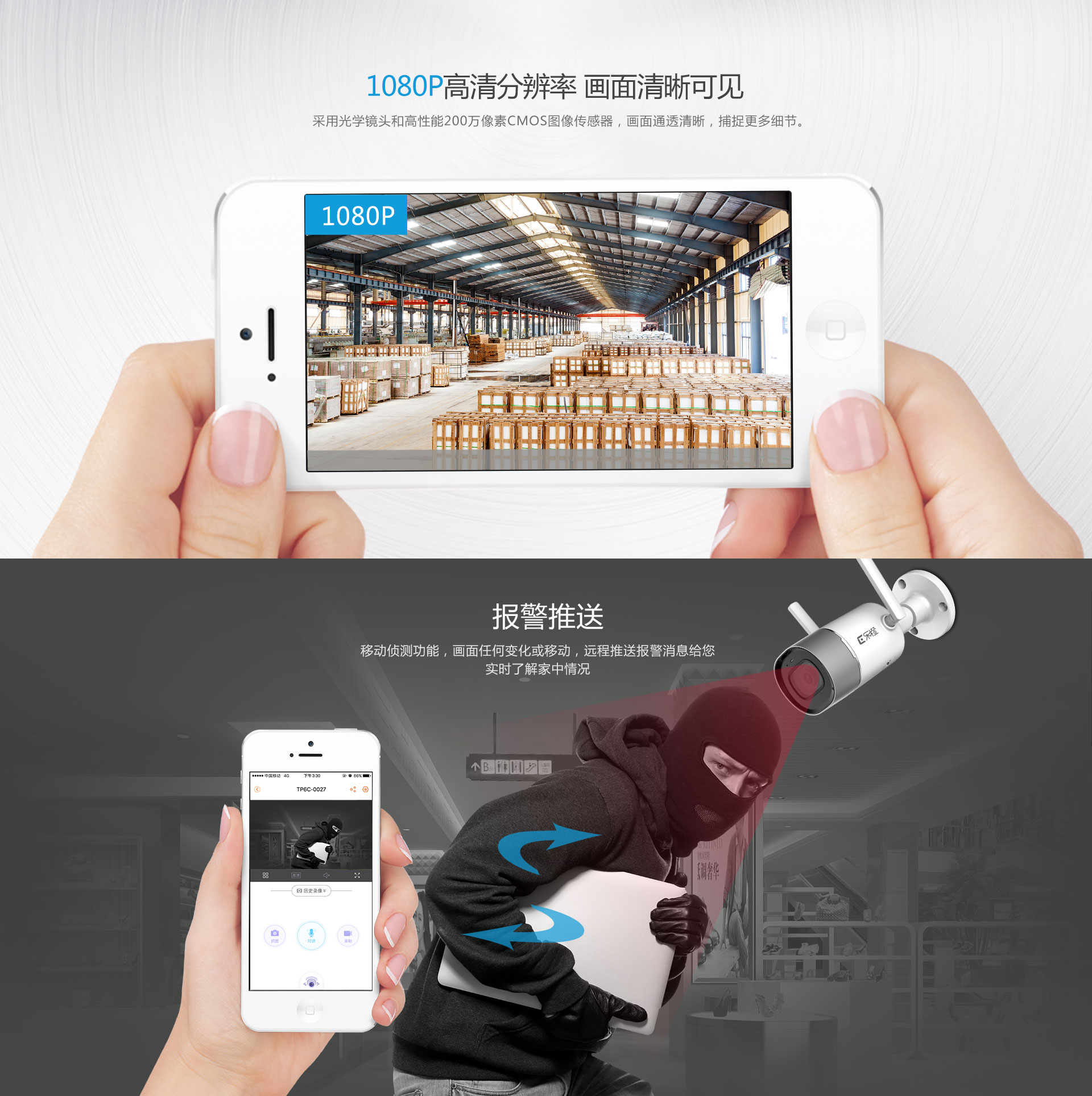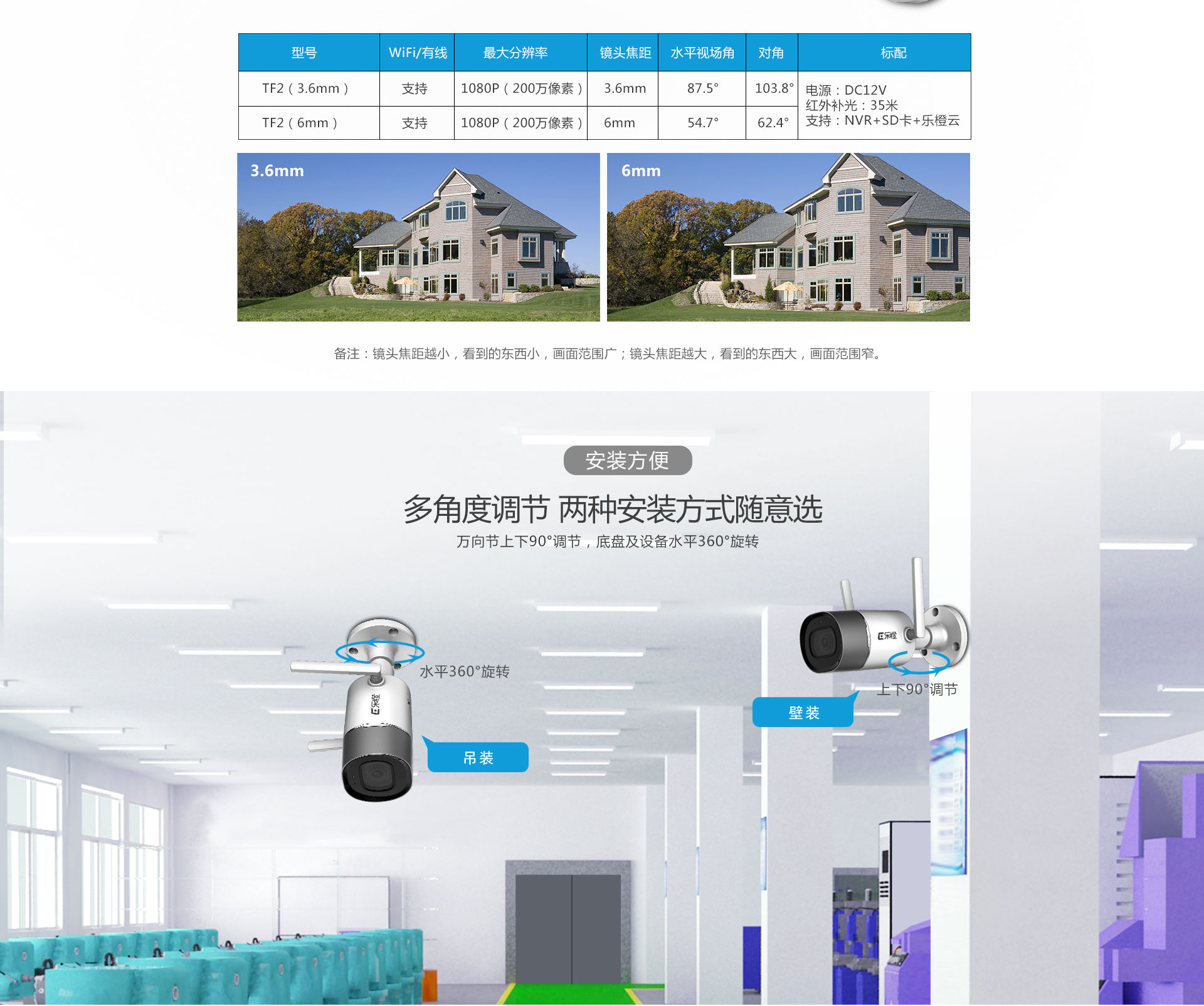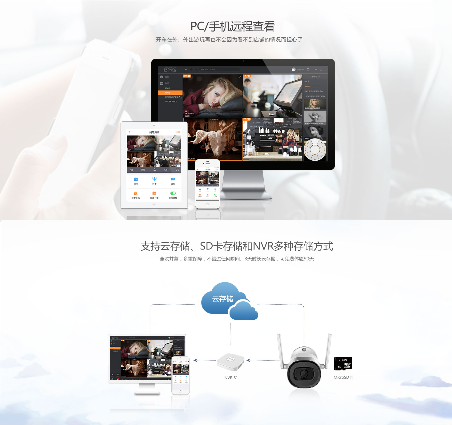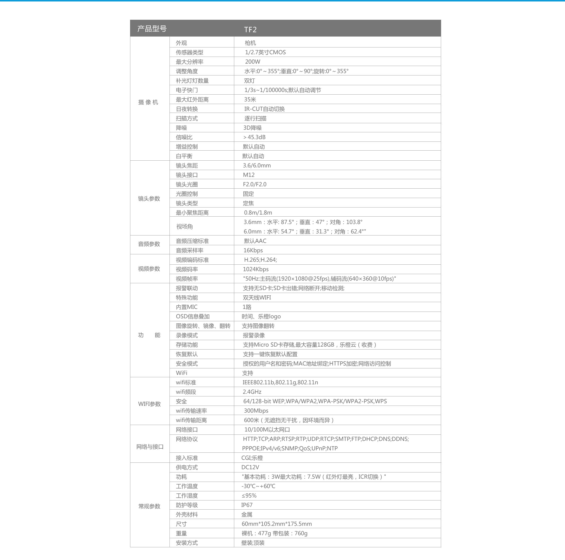 功能特性:1080P | 35米紅外夜視 | 全金屬機身 | 防水防塵 | 8M拾音 | H.265編碼 | WIFI/有線連接 | NVR+SD+云存儲