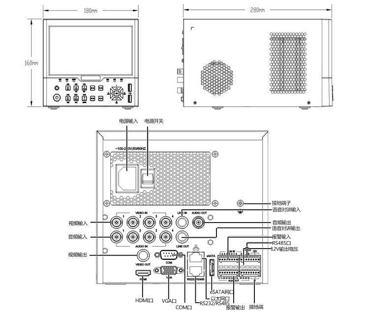 支持通過設備上的CVBS、VGA、HDMI接口連接監(jiān)視器進行輸出預覽