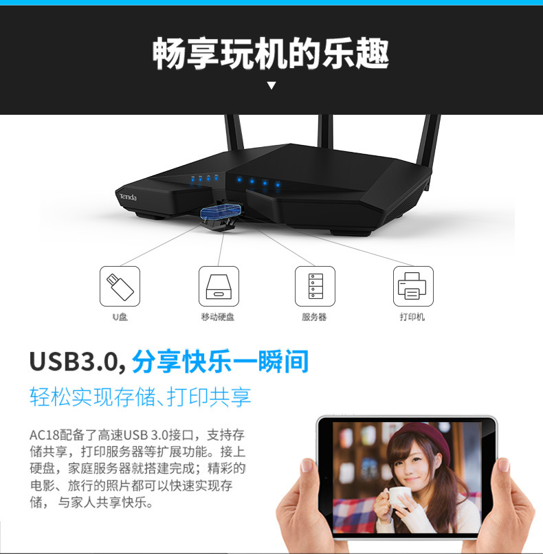 騰達(dá)AC18大功率1900M雙頻5G千兆無(wú)線WIFI路由器