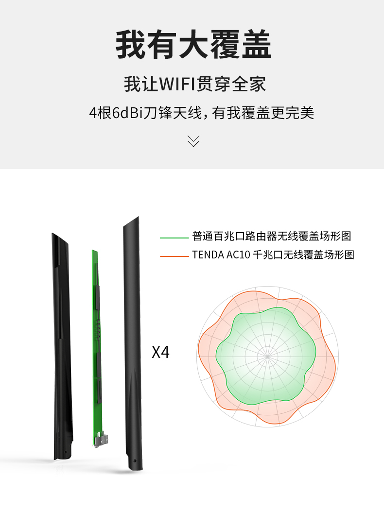 功能特性:騰達ac10千兆無線路由器穿墻王