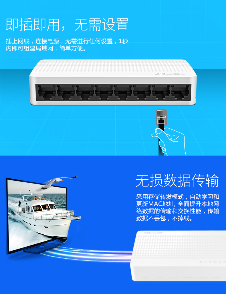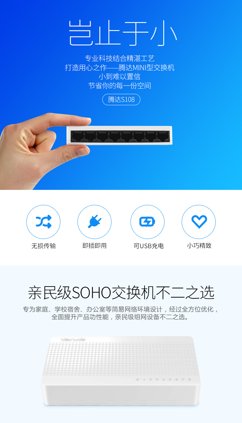 騰達交換機8口百兆 校園宿舍網線分線器USB供電S108