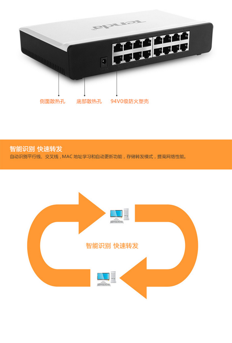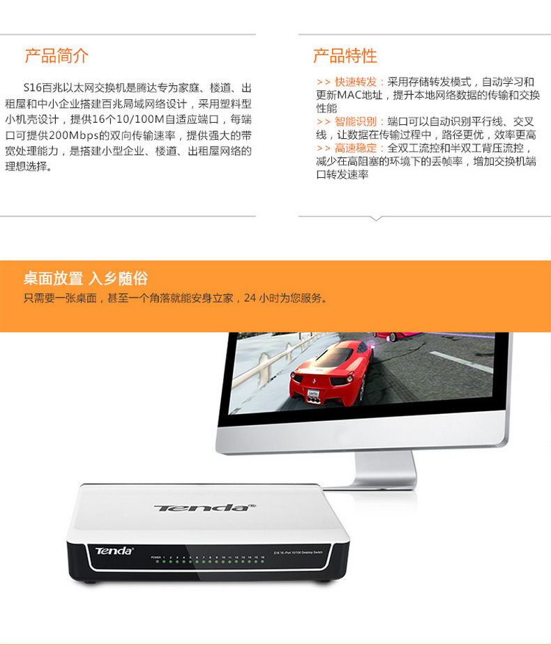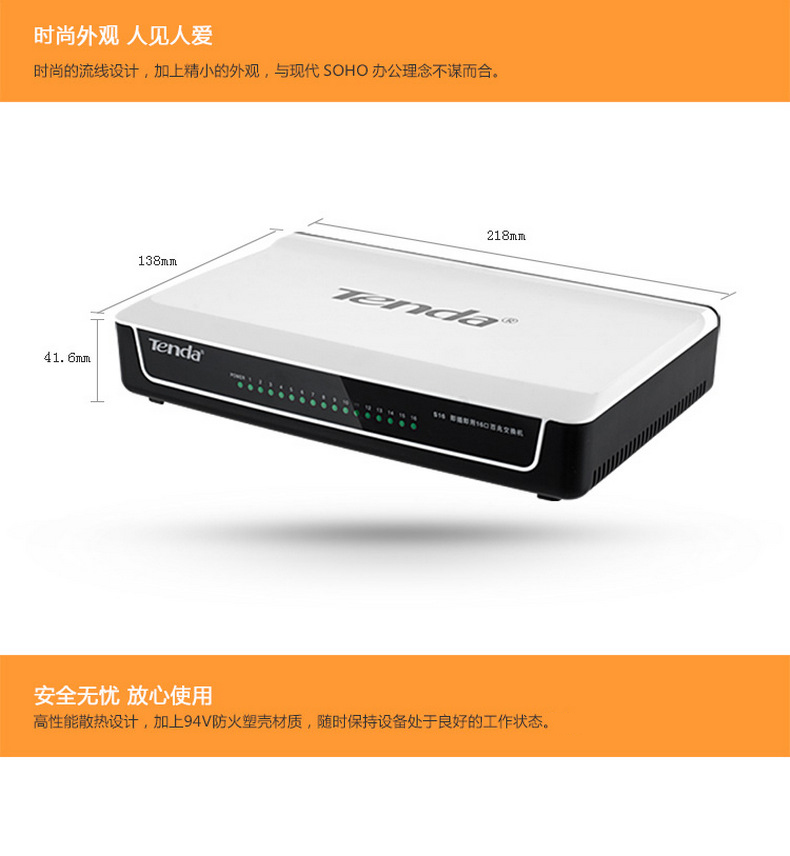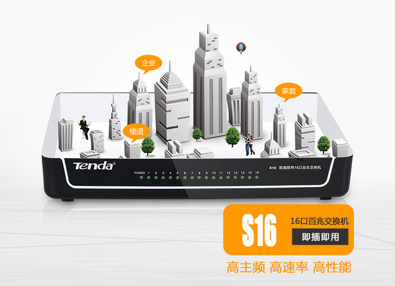 騰達S16 16口家用電信移動光纖寬帶百兆交換機