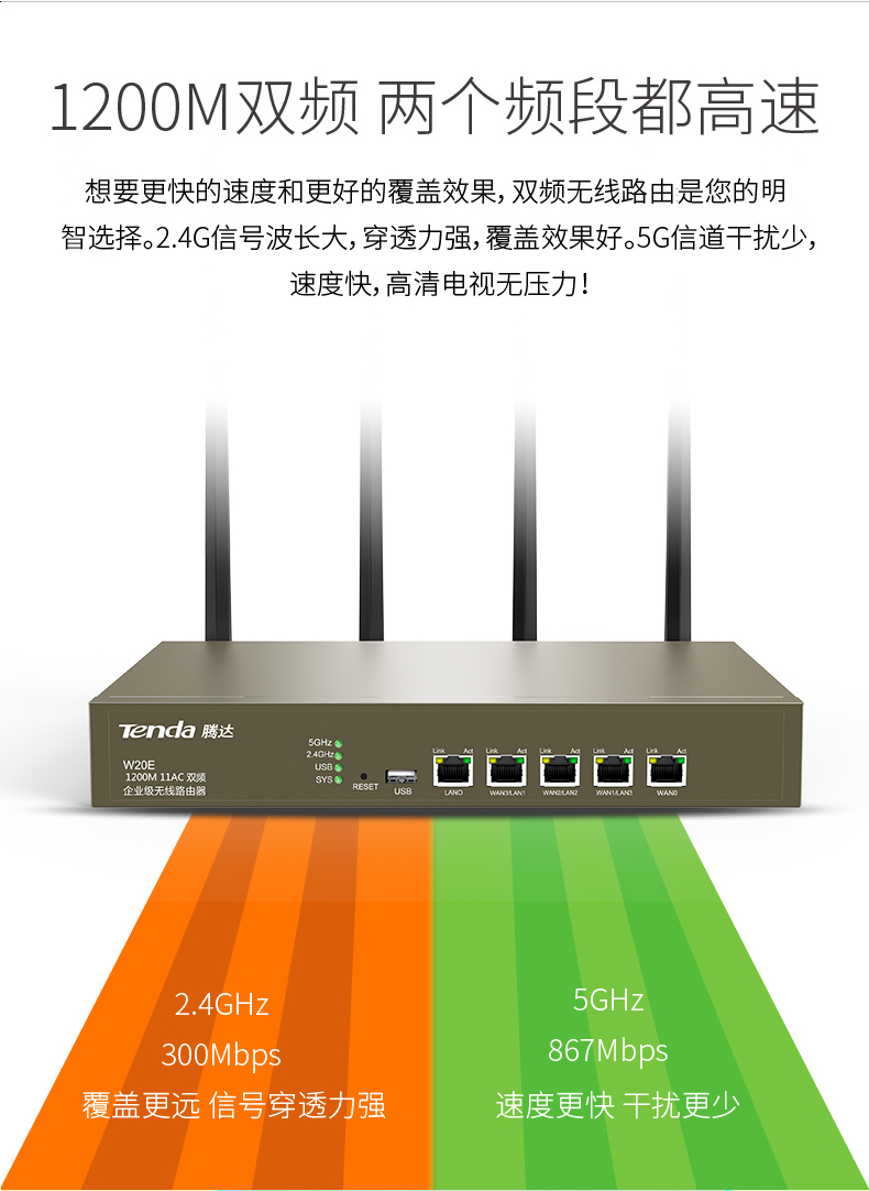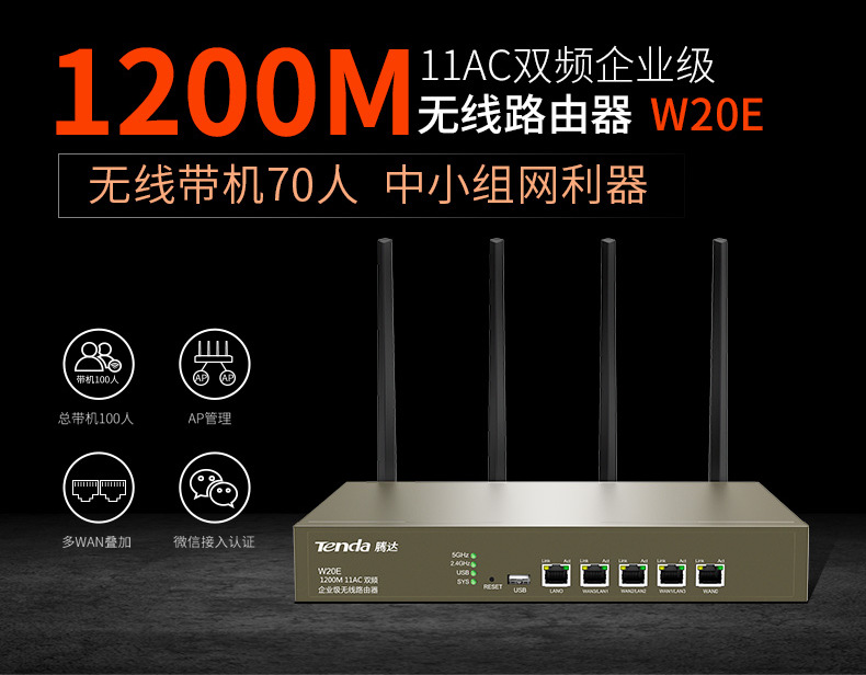 騰達(dá)W20E 1200M企業(yè)級大功率無線路由器 多WAN