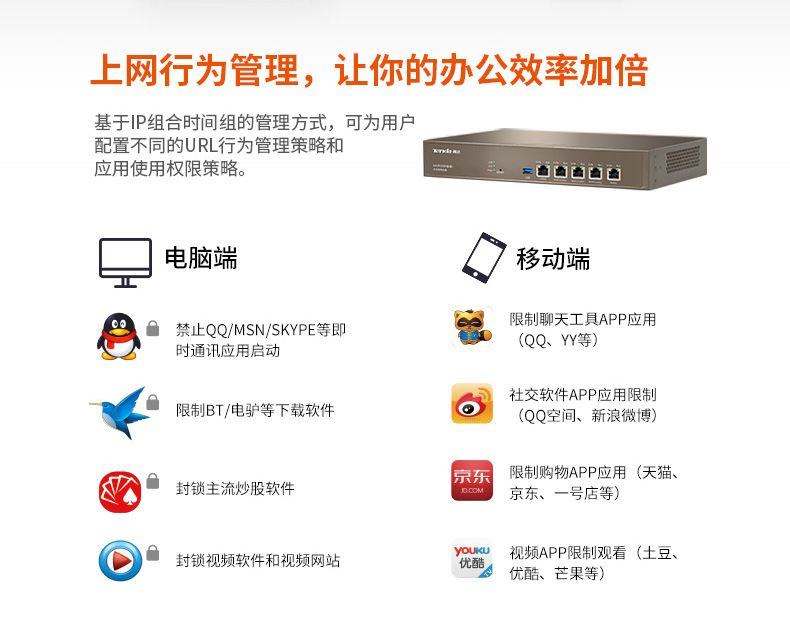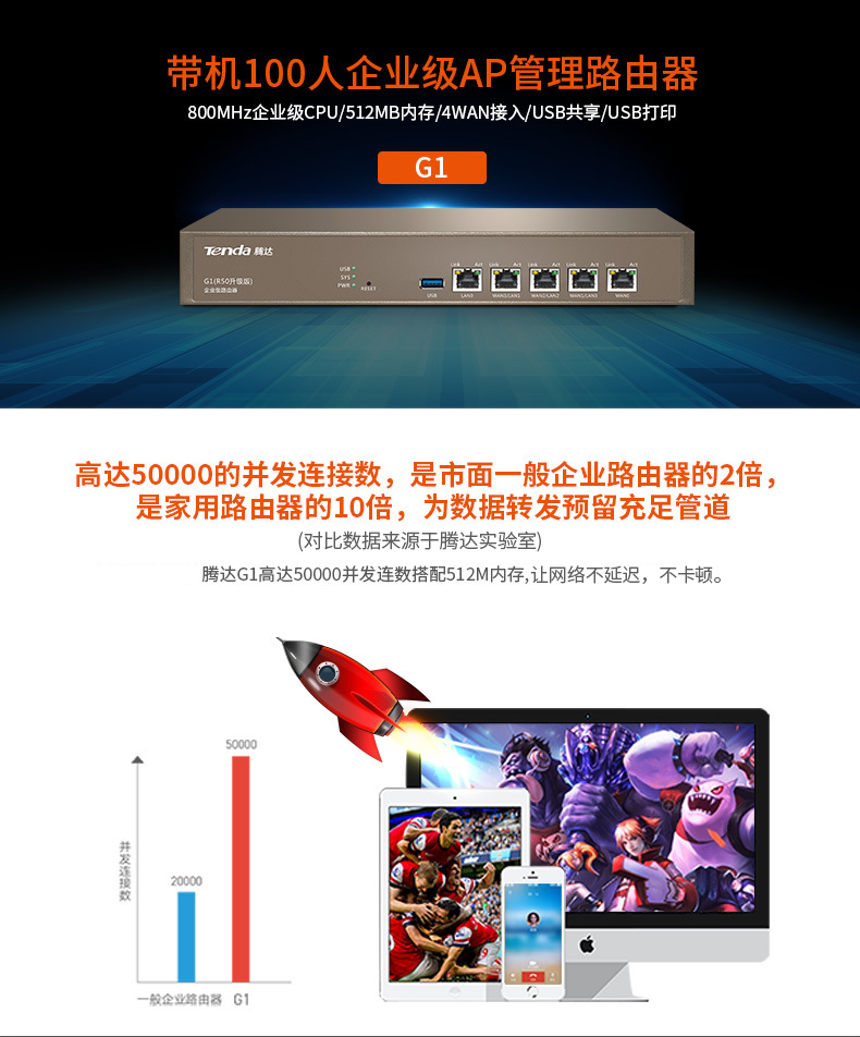 :騰達(dá)G3企業(yè)級千兆端口有線路由器商用微信營銷無線AC控制器