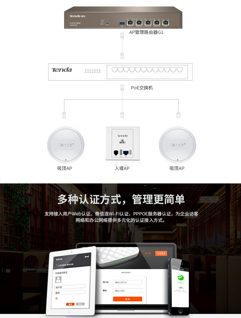 :騰達(dá) M3 無線ac管理認(rèn)證千兆無線ap控制器