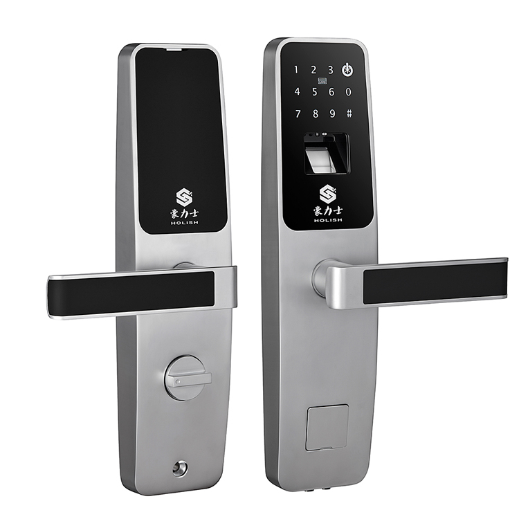 :豪力士玻璃門禁指紋鎖鋅合金材質時尚銀D2120F