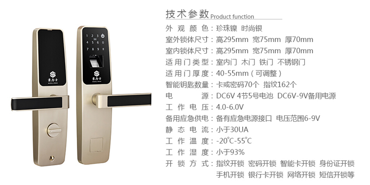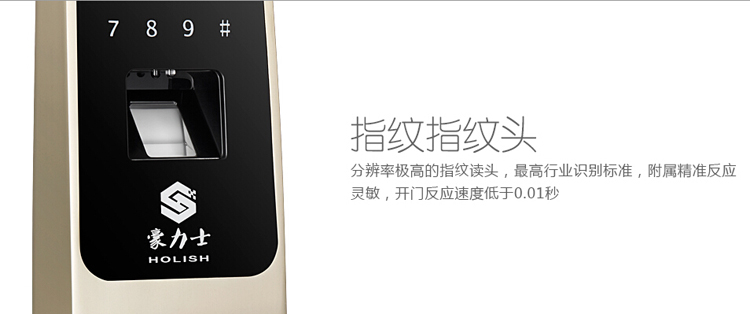:豪力士指紋鎖語音導航智能家用時間顯示門鈴木門 D9888F