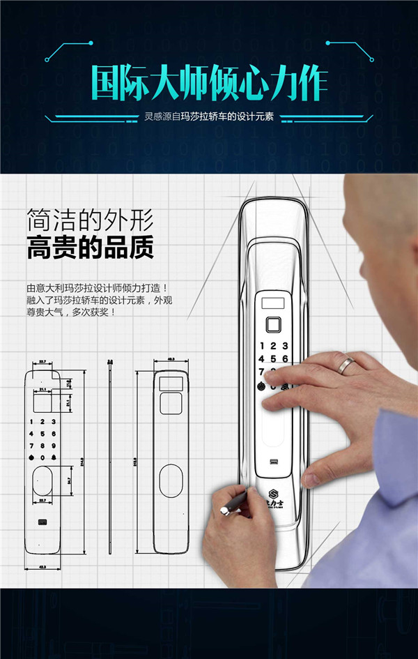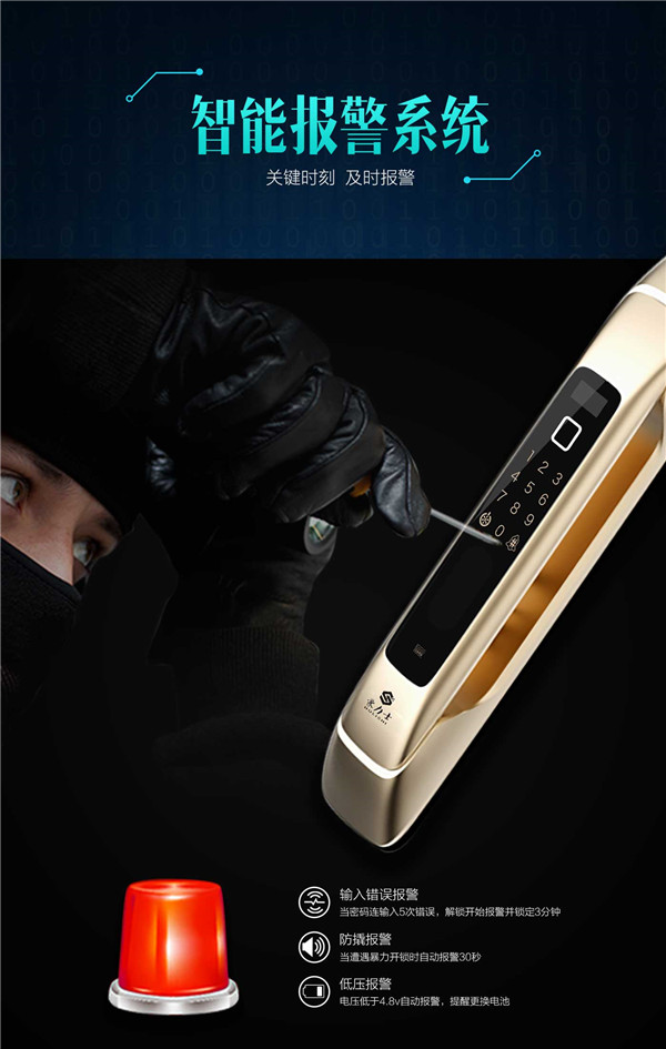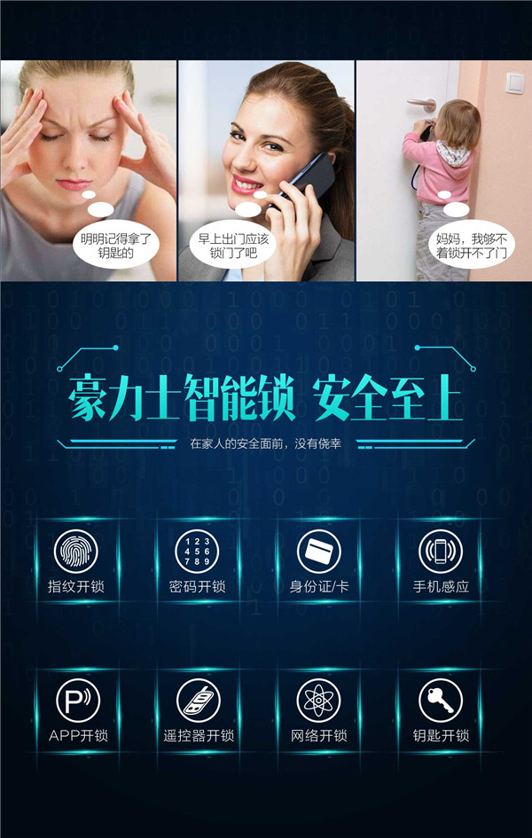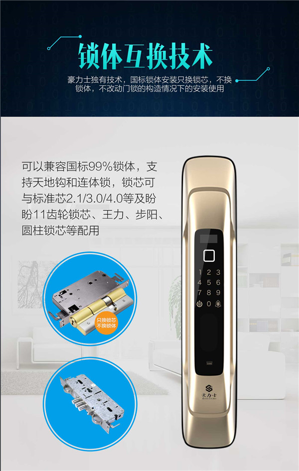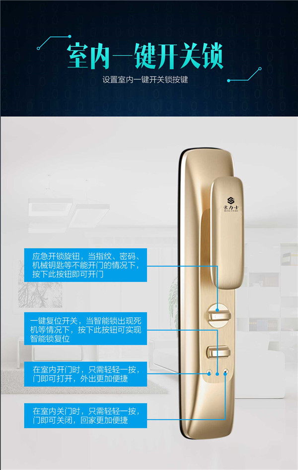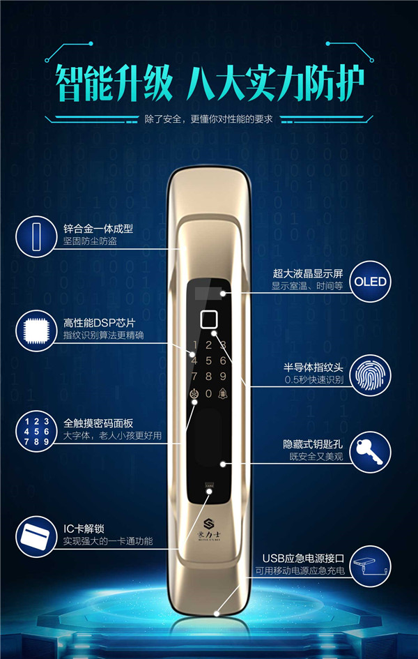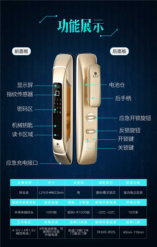 功能特性:豪力士未來一號指紋鎖智能家用防盜門鎖