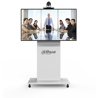 大華一體式單屏創真系列DH-VCS-RPS310采用一體化設計,集成高清攝像機、編解碼器、麥克風、顯示屏、推車支架等,